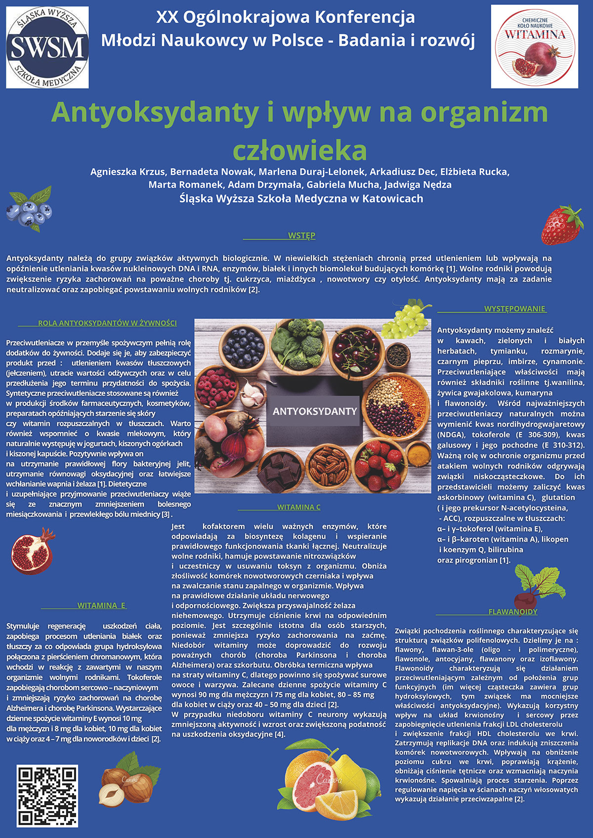 1. „Antyoksydanty i wpływ na organizm człowieka” – Agnieszka Krzus, Bernadeta Nowak, Marlena Duraj-Lelonek, Arkadiusz Dec, Elżbieta Rucka, Marta Romanek, Adam Drzymała, Gabriela Mucha, Jadwiga Nędza