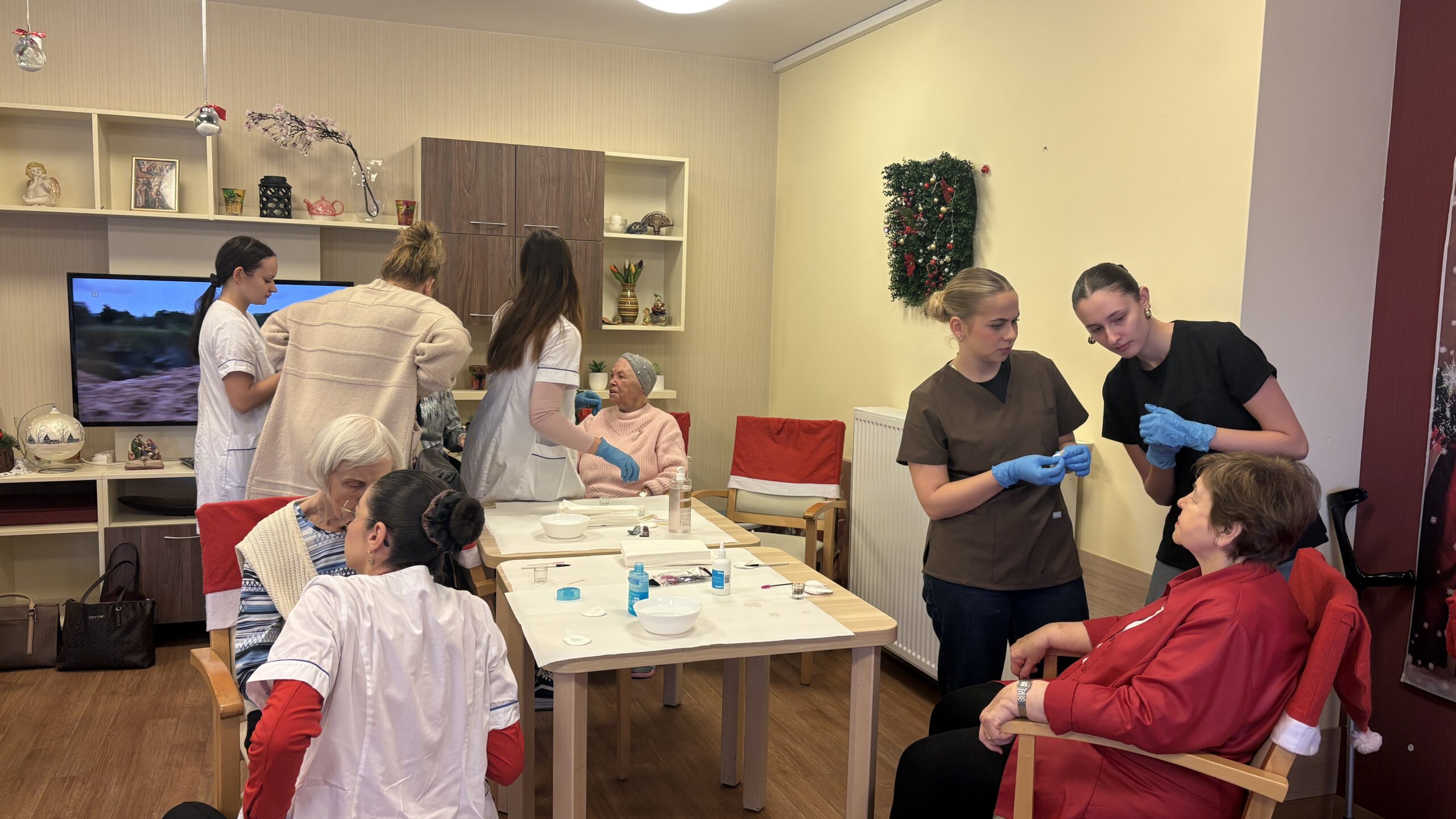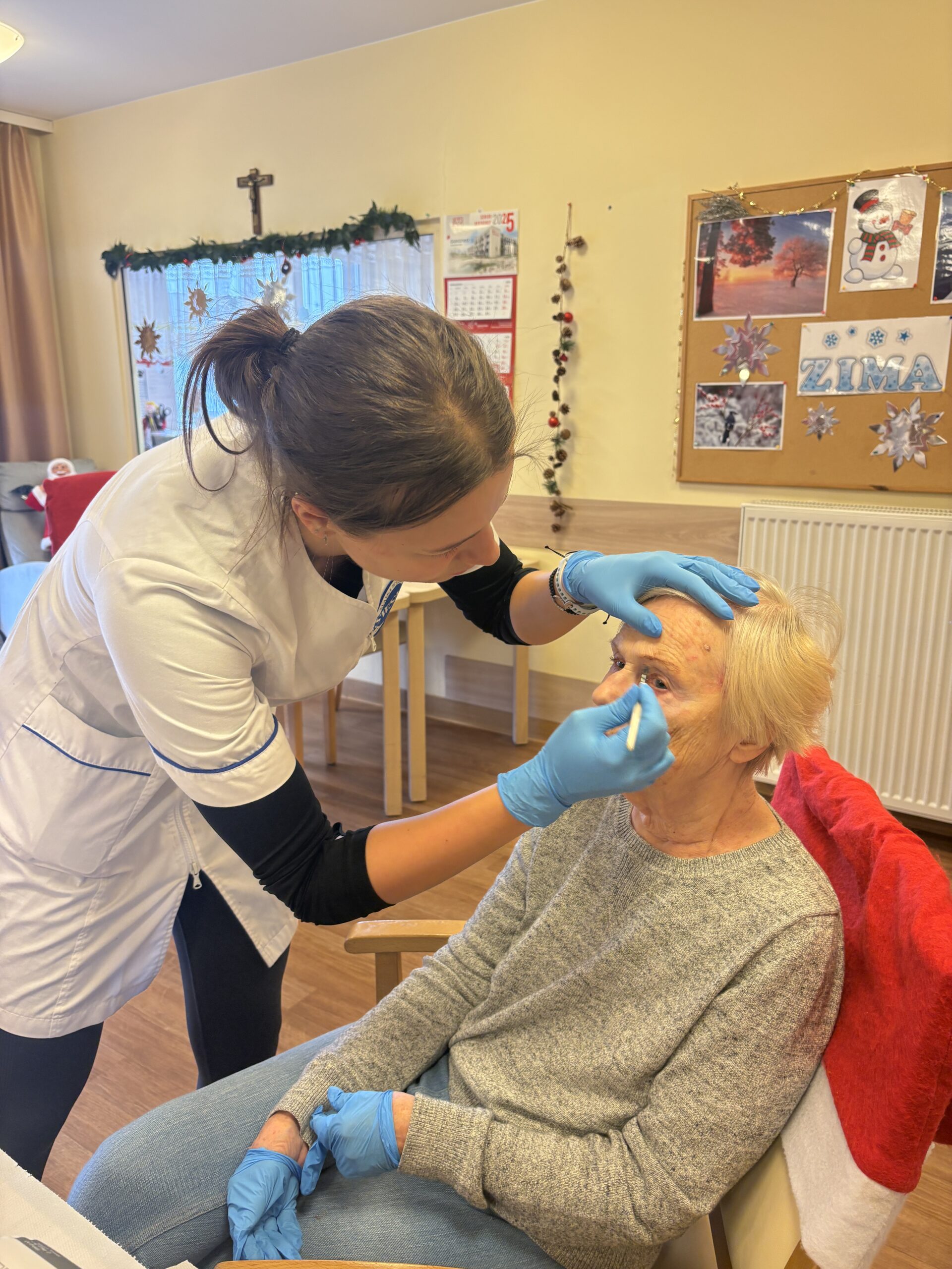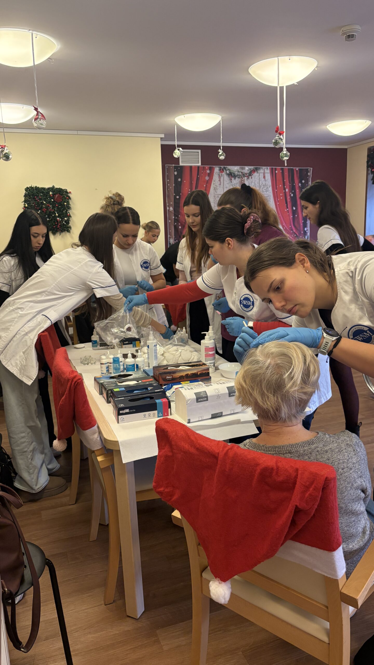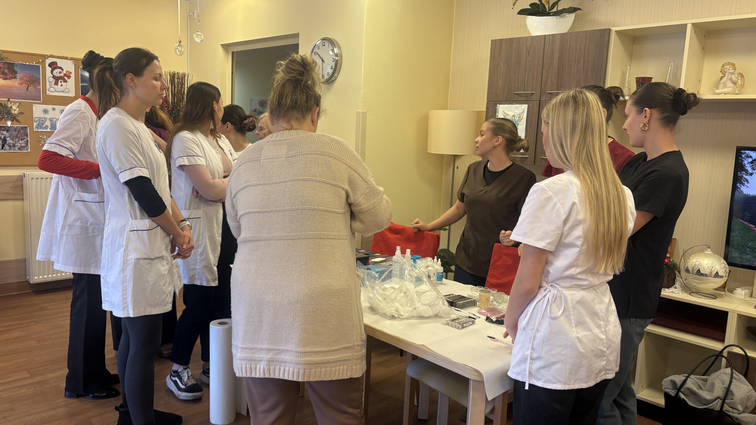 Zabiegi cieszyły się dużym zainteresowaniem i zostały bardzo ciepło przyjęte, przynosząc seniorom chwile odprężenia, poprawę samopoczucia oraz miłą odmianę w codziennej rutynie. Wizyta była nie tylko okazją do doskonalenia umiejętności praktycznych, ale także do rozwijania empatii, uważności i budowania relacji międzypokoleniowych.