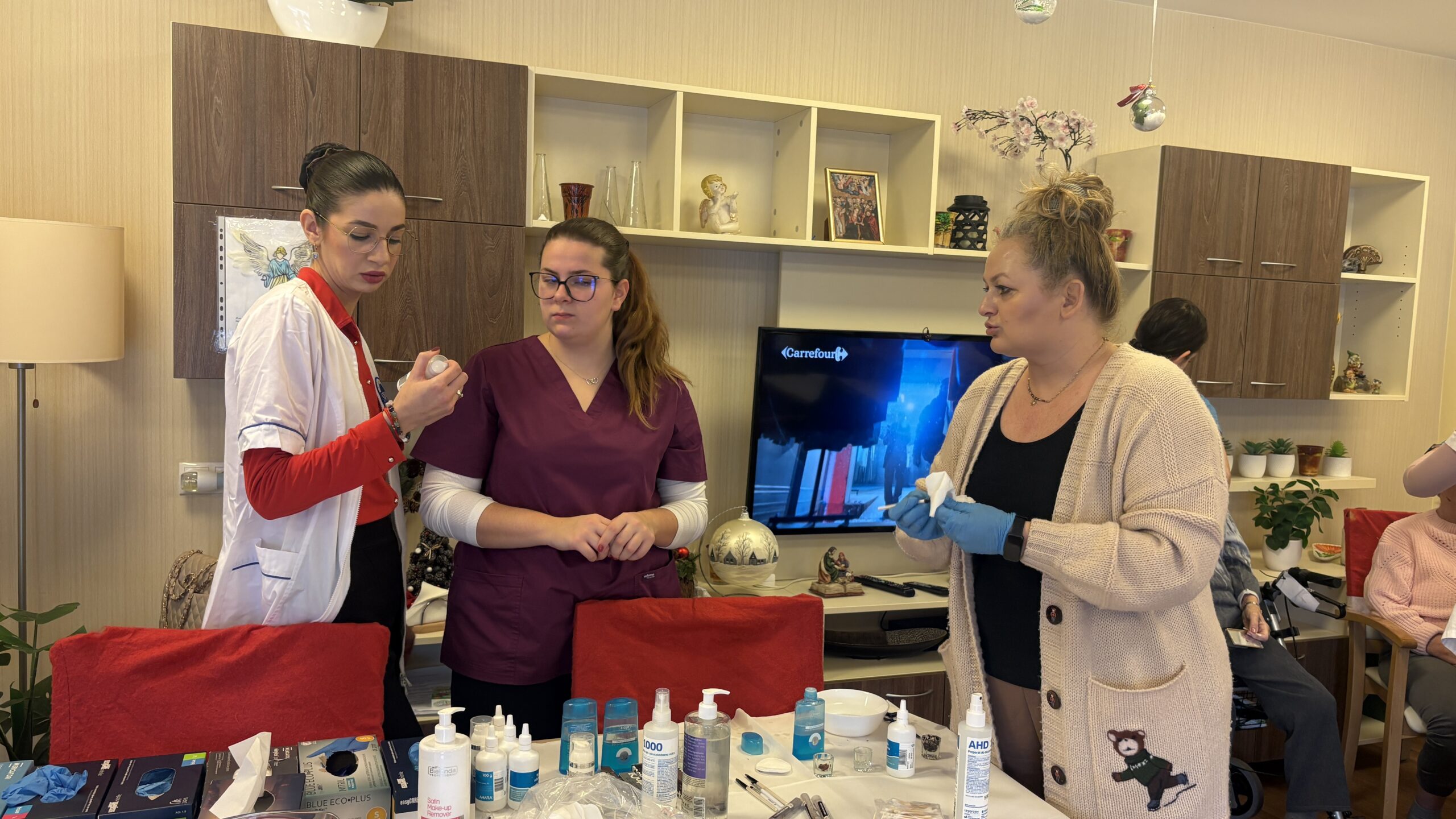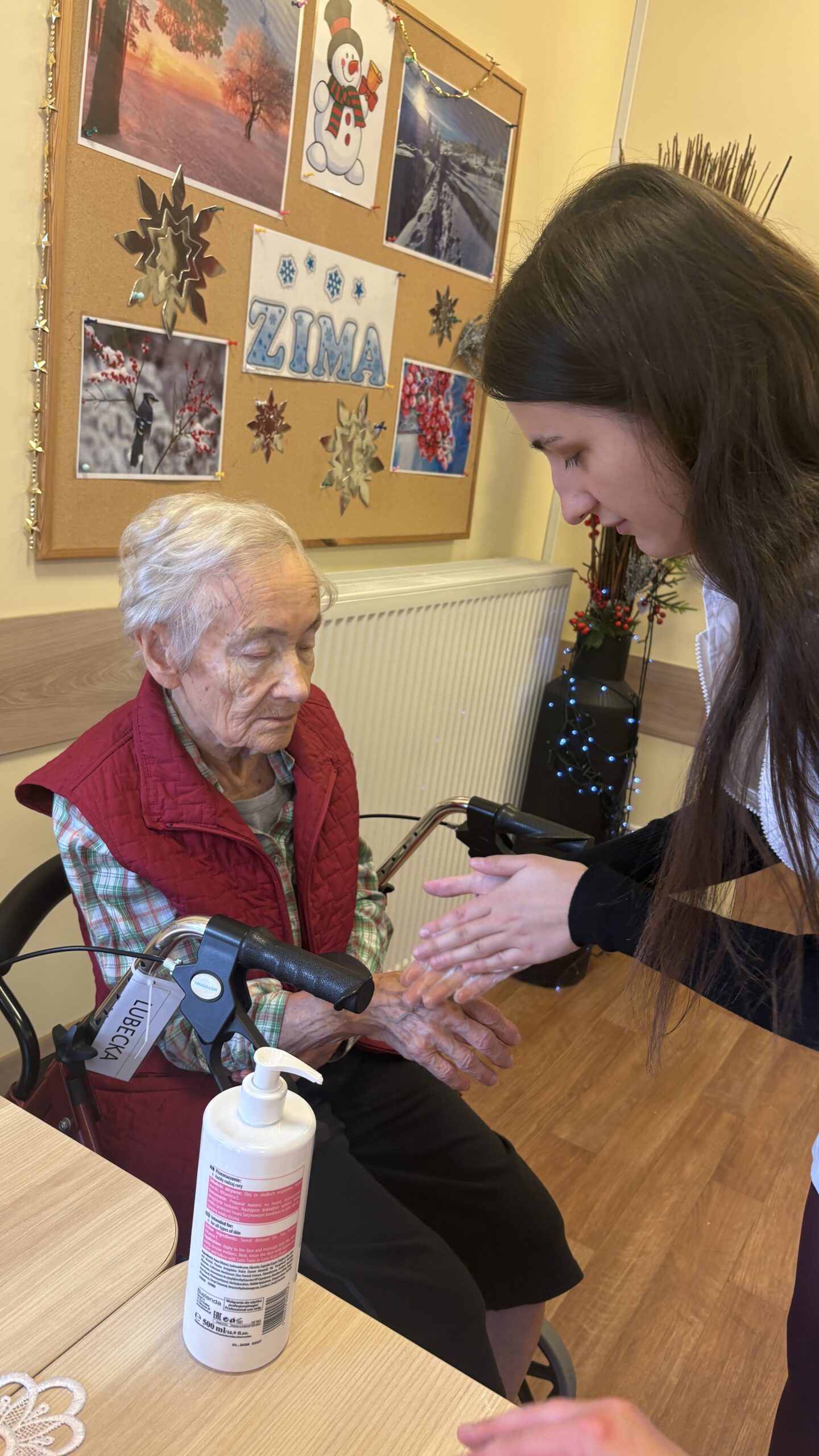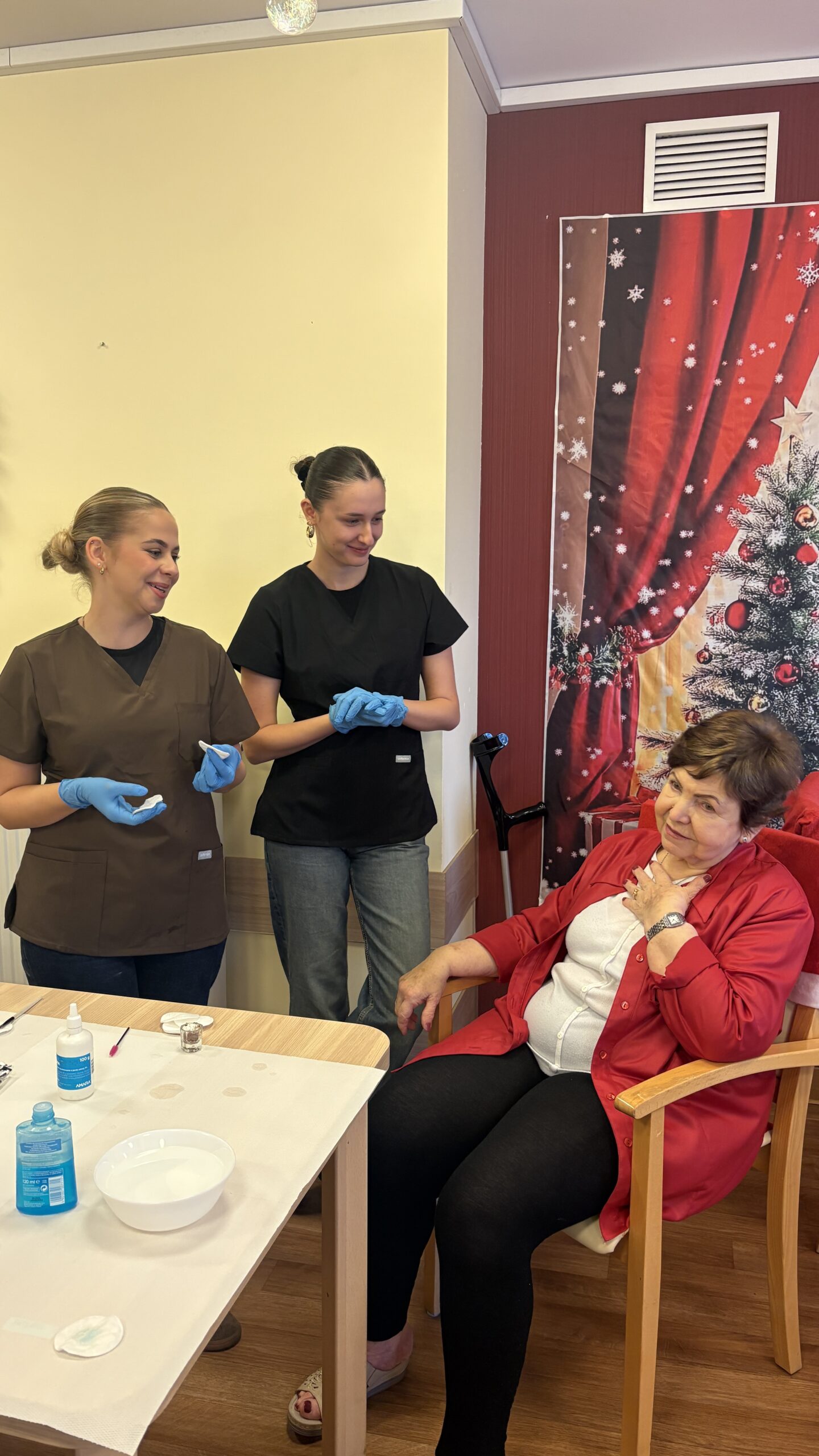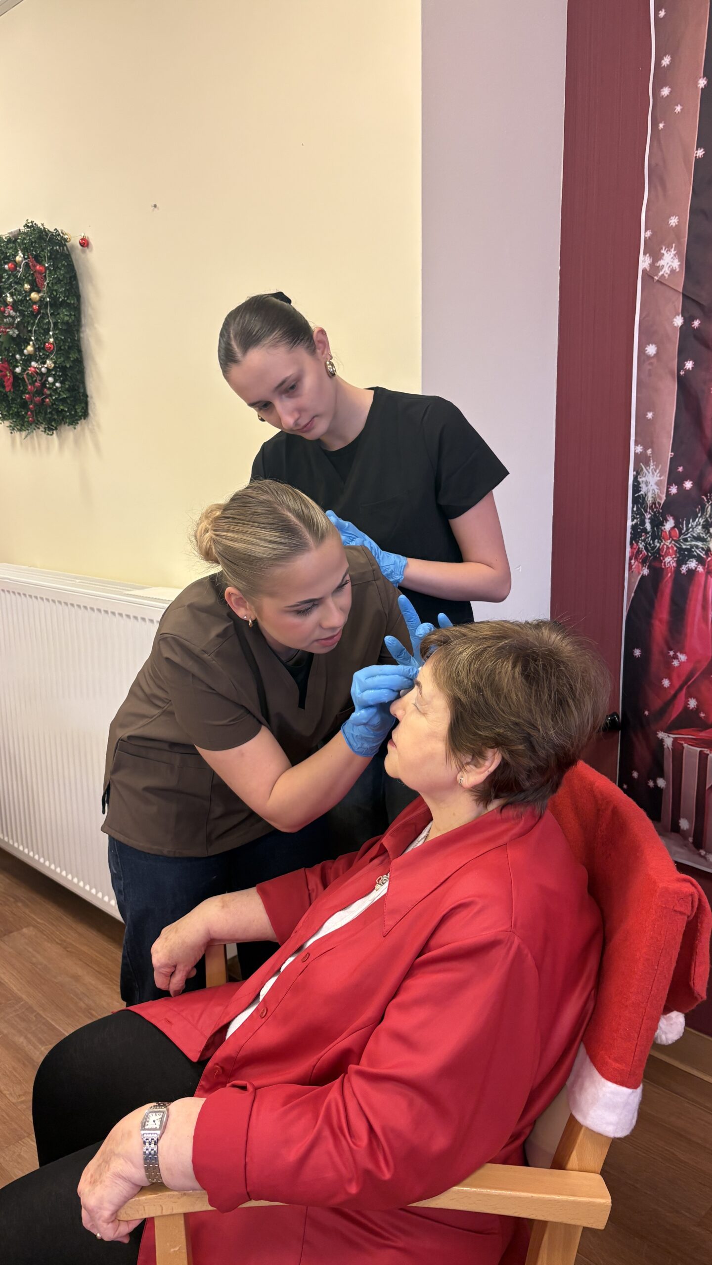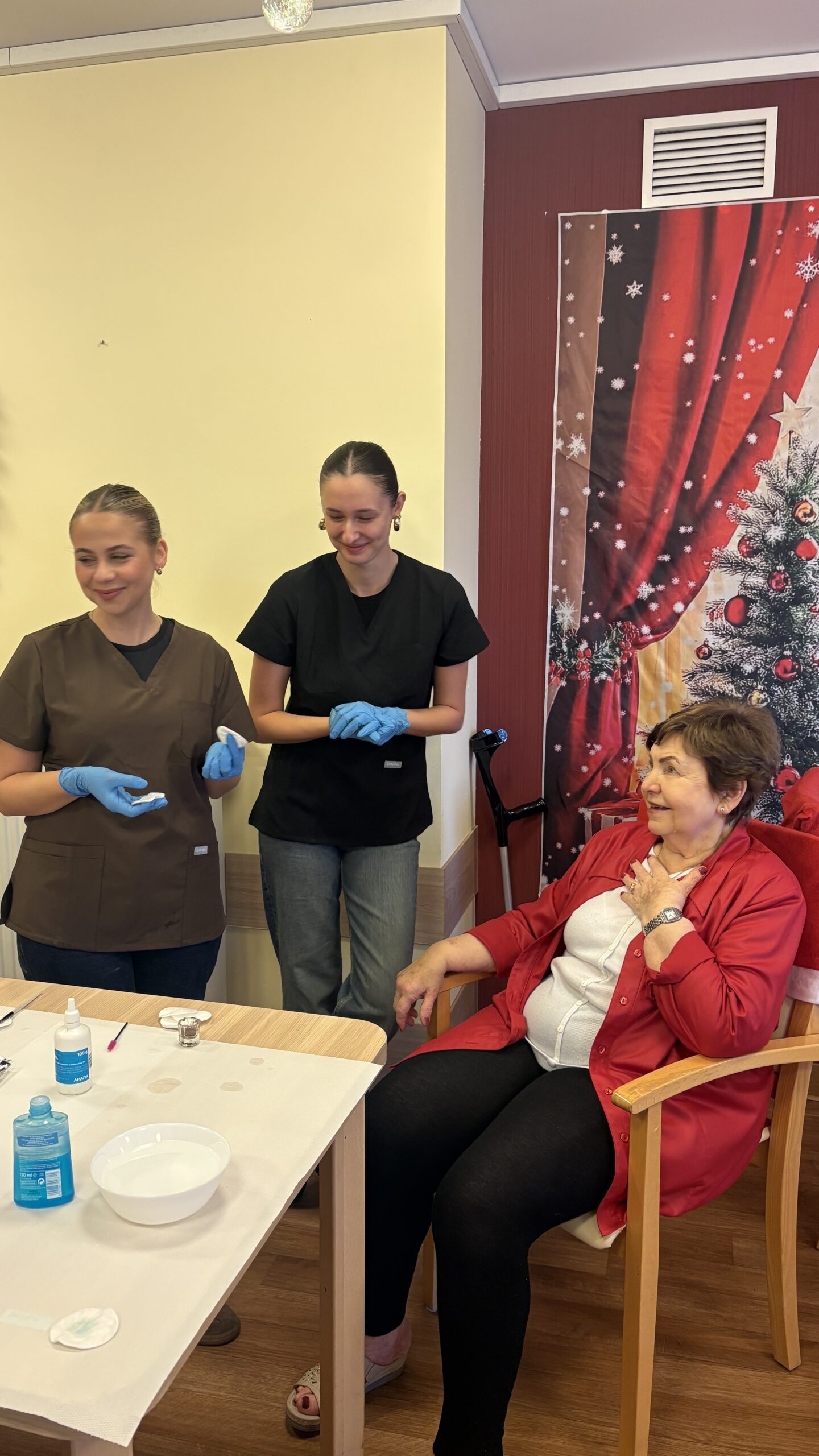 Zabiegi cieszyły się dużym zainteresowaniem i zostały bardzo ciepło przyjęte, przynosząc seniorom chwile odprężenia, poprawę samopoczucia oraz miłą odmianę w codziennej rutynie. Wizyta była nie tylko okazją do doskonalenia umiejętności praktycznych, ale także do rozwijania empatii, uważności i budowania relacji międzypokoleniowych.